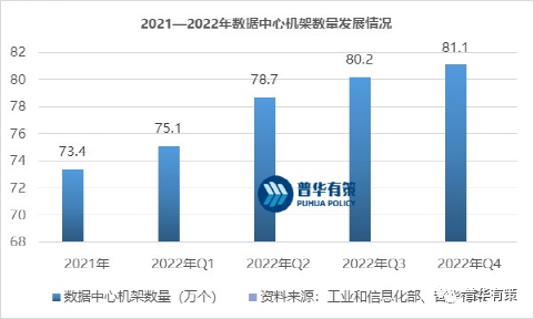 作为数据信息交换、计算、储存的重要载体,三家基础电信企业(中国移动、中国联通、中国电信)持续加大对数据中心的投入。2022年,三家基础电信企业为公众提供服务的互联网数据中心机架数量达81.8万个,全年净增8.4万个。其中,中西部地区机架数占比达21.9%,较上年末提高0.6个百分点,数据中心过度集中在东部的局面有所改善。2022年基础电信企业加大自身算力建设力度,自用数据中心机架数比上年末净增16万个,对外提供的公共基础算力规模超18EFlops(E指千兆,Flops指每秒浮点运算次数),着力打造网络、连接、算力、数据、安全等一体化融合服务能力,为提供高质量新型数字化服务奠定基础。