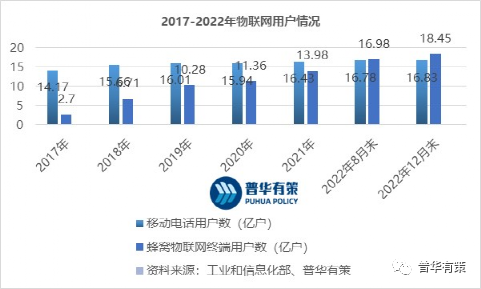 2022年,我国移动网络的终端连接总数已达35.28亿户,其中代表“物”连接数的蜂窝物联网终端用户达18.45亿户,全年净增4.47亿户,较移动电话用户数高出1.61亿户,占移动网终端连接数(包括移动电话用户和蜂窝物联网终端用户)的比重达52.3%,万物互联基础不断夯实;蜂窝物联网终端应用于公共服务、车联网、智慧零售、智慧家居等领域的规模分别达4.96亿户、3.75亿户、2.5亿户和1.92亿户。2022年8月,物联网用户数量首次超过移动电话用户数量。