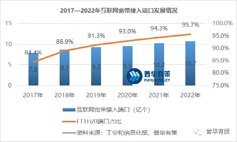 截至2022年底,互联网宽带接入端口数达到10.71亿个,比上年末净增5,320万个。其中,光纤接入(FTTH/O)端口达到10.25亿个,比上年末净增6,534万个。截至2022年底,具备千兆网络服务能力的10GPON端口数达1,523万个,比上年末净增737.1万个。网络运力不断增强,固定网络逐步实现从百兆向千兆的跃升。