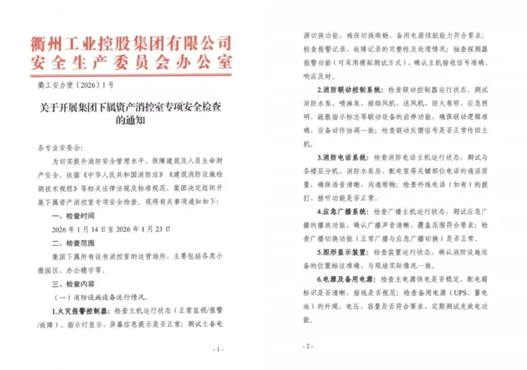 为提升重点领域安全管理水平,于1月14日印发了《关于开展集团下属资产消控室专项安全检查的通知》,系统部署专项检查工作,着力规范消控室管理。同时,聚焦有限空间作业等高风险环节,于1月30日组织开展专项安全培训,采用“理论授课+案例剖析”模式,围绕作业审批、现场管控等关键内容进行系统讲解,切实提升相关人员的风险辨识与规范操作能力。