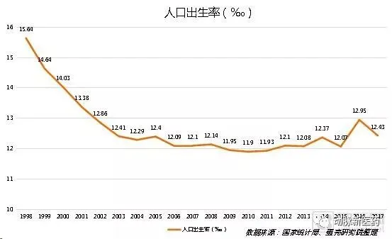 国家统计局数据显示,我国新出生人口出现长期下降的趋势。在2013年正式实施“二孩”政策之前,新出生人口数量由1998年的1951万下降到了2013年的1644万,而出生率则由15.64‰下降到了12.07‰。