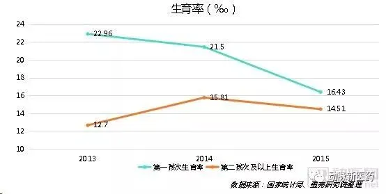 更进一步拆解该数据,二孩政策实施以来,一孩的出生率依旧呈现下降趋势,由22.96‰下降到16.43‰;而二孩及以上出生率的增长对于总人口出生率增长的贡献度最大,其出生率由12.70‰增长到14.51‰。