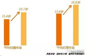 国家统计局的最新数据显示,从1990年至2017年,我国育龄妇女平均初婚年龄推迟4岁多,从21.4岁提高到25.7岁,并有继续走高趋势;平均初育年龄也从23.4岁提高到26.8岁。
