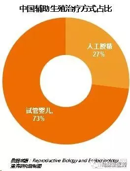 同时按照《Reproductive Biology and Endocrinology》的研究,目前中国专家采取人工授精与试管婴儿手段进行治疗的比例分别为27%及73%(7:19)。