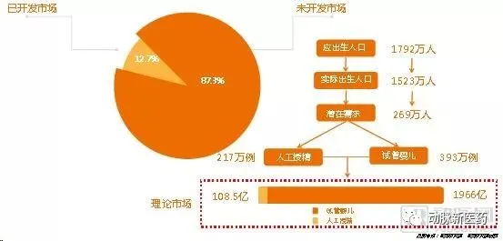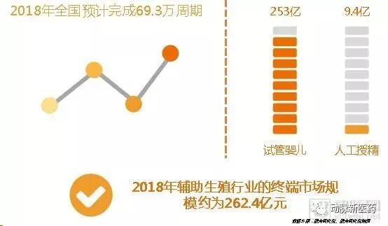 2.而试管婴儿50.6万周期(单周期平均费用5万元),试管婴儿的终端市场规模约253亿;