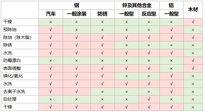 图:不同材料粉末涂料前处理工艺
