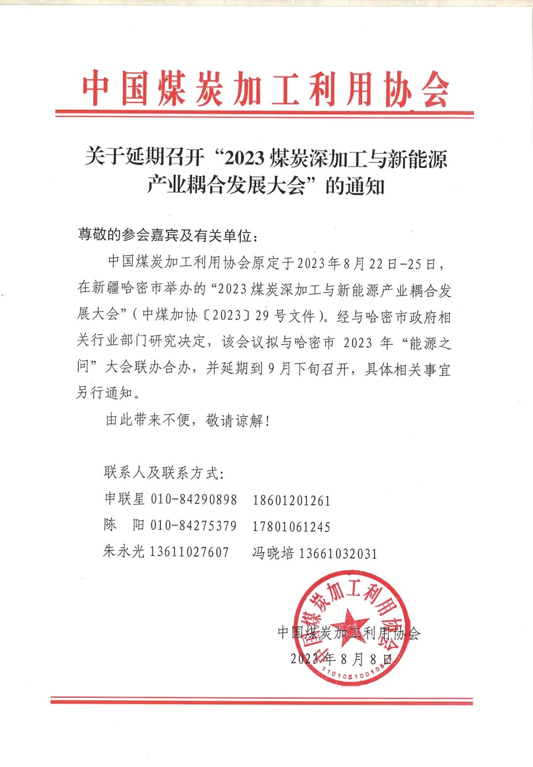 石油和化学工业规划院、西北电力设计院、新疆宣东能源、天津得威建环保联合主协办支持的“2023煤炭深加工与新能源产业耦合发展大会”延期至9月中下旬召开!继续接受报名中......