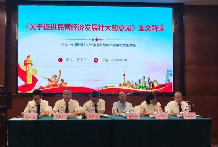 在学习《中共中央 国务院关于促进民营经济发展壮大的意见》的时候,党支部书记吴庆裕从“知其重要”、“应其紧要”、“落实为要”三个要对《意见》进行了解读。大家也为福建的“晋江经验”在中共中央 国务院文件中得以肯定为自己作为一个福建人而骄傲,增强了作为一个民营企业家奋力拼搏的信心。