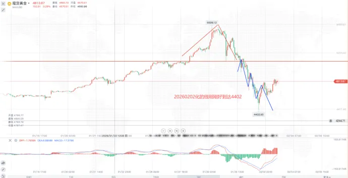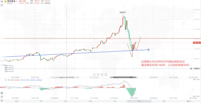 总结一下当前的市场,昨天的黄金最低触及4402,准确来说最低触及4397但收先在4402,而我昨天所给出的两个接多位置,4600以及4402都到达,很多人没接上的,我也给出回踩4600-4620可以继续接多的思路,这是激进单,但没有跌破4600还是得接上这一轮车,目标都是5005