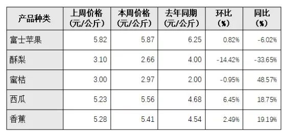表2 重点监测的水果价格周变化情况