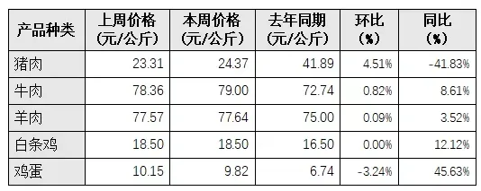 表3 重点监测的畜禽产品价格周变化情况