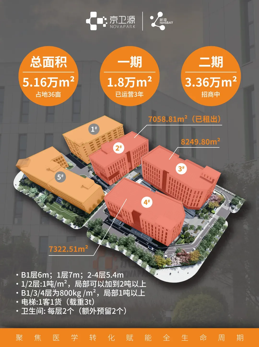 京卫源孵化产业园位于大兴生物医药产业基地华佗路51号院,在空间规划上精准匹配生物医药产业特性,通过科学优化的面积配置、高适配性层高设计、稳定可靠的电力保障、高标准承重结构及产业化配套空间,构建起覆盖早期研发、中试放大至产业化落地的空间集群,可以充分满足各类生物医药项目不同发展阶段的差异化需求。为加速生物医药创新成果转化落地,园区凭借深耕行业多年积累的临床转化经验与市场前瞻洞察力,聚焦生物医药创新孵化核心赛道,构建了覆盖生物医药全生命周期的一站式全链条服务生态体系,形成三大核心服务能力:一是覆盖药物研发到上市销售等关键环节的技术孵化与转化赋能能力;二是链接和加速国际国内优质资源的双BD合作服务能力,助力项目拓展全球市场网络;三是从项目发展规划到市场价值变现的全流程加速服务能力,全方位降低项目开发风险、提高开发效率,最大化项目临床和市场价值。二期建成后,京卫源以“新湾novaBAY”为品牌引领,持续整合产业链上下游资源,致力于成为生物医药创新项目的“成长沃土”与“加速引擎”,为区域生物医药产业高质量发展注入强劲动能。
