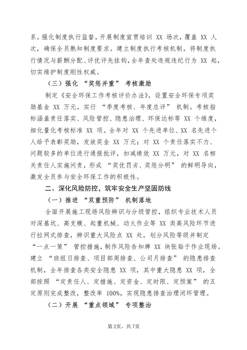 2025 建筑施工企业安全环保年度总结报告:守牢安全底线 厚植绿色根基