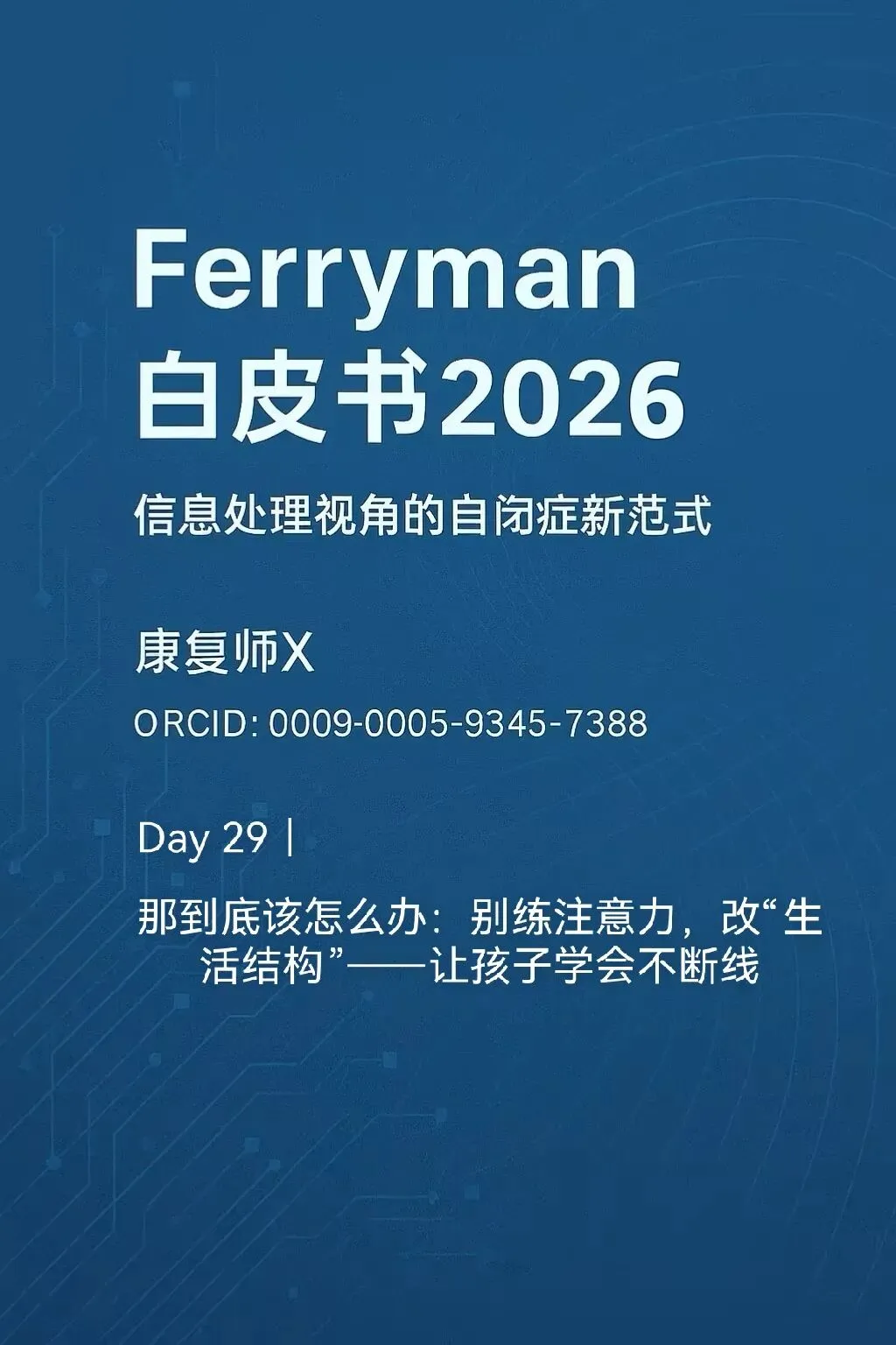 本白皮书《Ferryman 白皮书 2025:信息处理障碍视角下的自闭症干预模型》及系列内容为 康复师X(Ferryman 体系)原创,享有完整著作权。