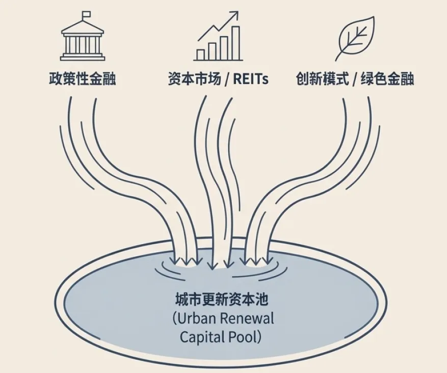 在现有基础上,进一步扩大城市更新再贷款等政策性金融工具的规模和覆盖范围。加快推进城市更新领域REITs的常态化发行,并探索将收益权不清晰的公益性项目打包纳入的可行性。鼓励发展绿色金融、影响力投资等创新金融模式,引导更多资本流向兼具社会和环境效益的更新项目。