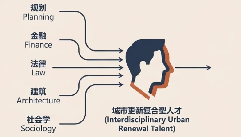 城市更新是涉及规划、建筑、金融、社会、法律等多学科的复杂领域,对从业人员的复合能力要求极高。建议鼓励高校开设相关专业,加强对政府、企业等从业人员的系统性培训,打造一支懂政策、懂技术、懂市场、懂运营的专业化人才队伍。