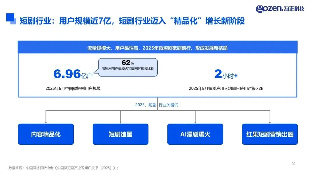 2025年短剧用户规模近7亿,短剧行业迈入“精品化”增长新阶段;