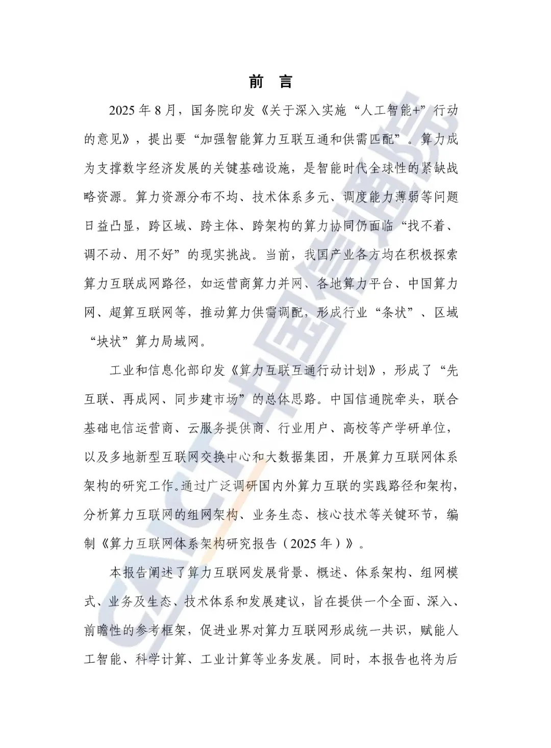近日,中国信息通信研究院发布《算力互联网体系架构研究报告(2025年)》。