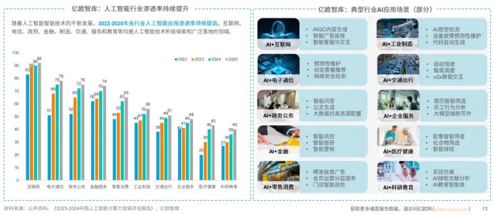 科研教育行业AI聚焦“创新与效能”:个性化教辅方案通过大模型提升学生词汇/语法长期记忆率28%,创造付费场景;科研实验AI解决方案优化实验设计,缩短研发周期,帮助抢占市场先机,推动教育向个性化、科研向智能化转型。