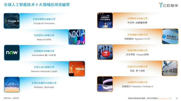 WIM2025创新者年会上,基于对人工智能技术应用产业的深入了解以及丰富的行业资源储备,亿欧重磅发布了“全球人工智能技术十大领域应用突破奖”。