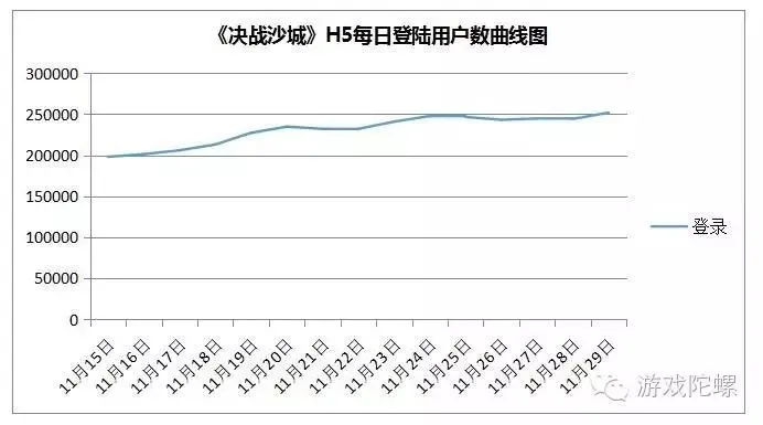 我们先来看下关键的数据:据中手游透露,拥有传奇IP的《决战沙城》H5目前月流水已破2000万,DAU超过30万,全渠道自然用户次日留存30%,三日留存25%,七日留存19%,付费率5%。