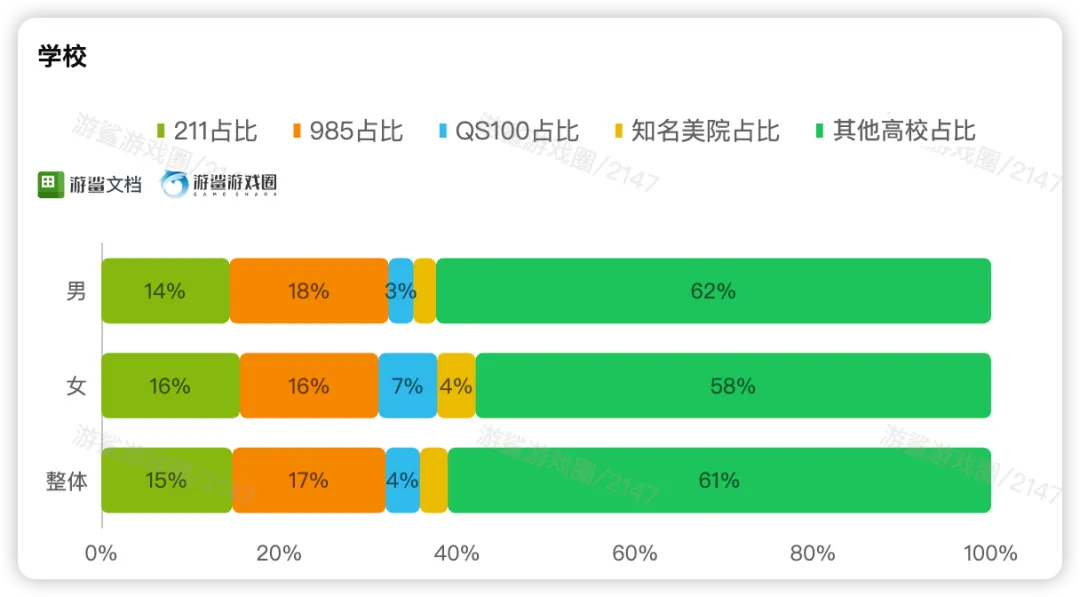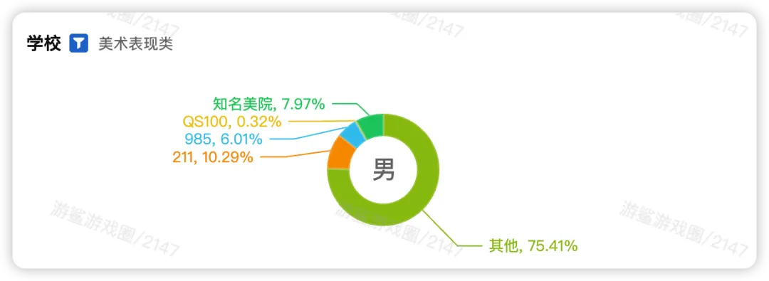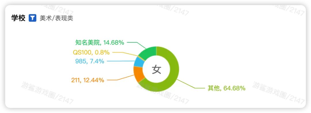 在211/985/QS100及知名美院背景样本中,女性占比略高。