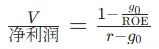 企业价值/净利润=(1-g0/ROE)/(r-g0)=PE