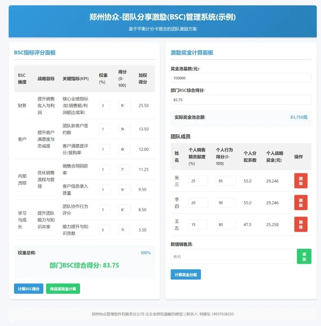 郑州协众-销售部门团队分享激励(BSC)管理系统试用版链接:http://www.zzxzbsc.cloud