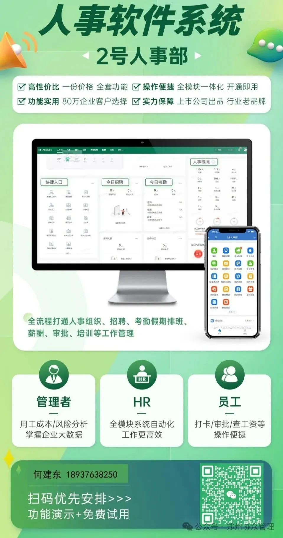 HR软件包括组织人事、招聘培训、考勤假期、薪酬社保、绩效考核六大模块,并提供行政审批、员工自助、弹性福利等服务,云端或本地部署,开通即用。软件可提高组织效率并降低管理成本,提升员工满意度,预约联系可提供远程演示和免费试用。