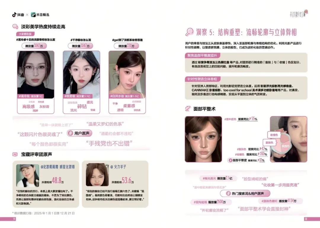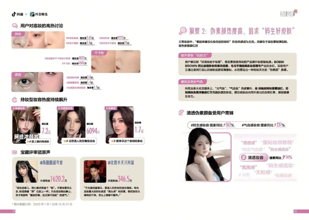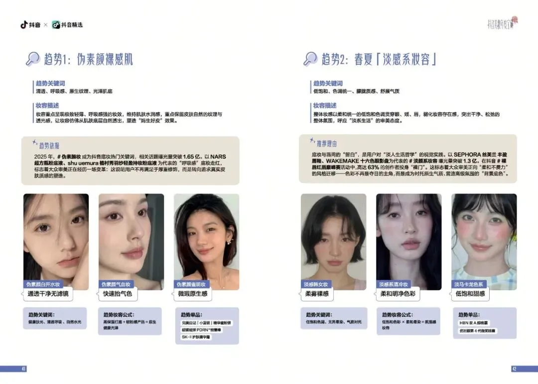 2025年,美妆呈现出从外在修饰向内在表达转变的趋势。消费者不再满足于单纯的视觉美化,而是追求一种能够展现自我风格与生活态度的美妆方式。调研显示,用户对底妆的需求从厚重遮瑕转向轻薄透气,伪素颜妆成为热门趋势。伪素颜妆相关话题曝光量突破1.65亿,消费者渴望在日常生活中展现一种自然、健康、有呼吸感的妆容效果。