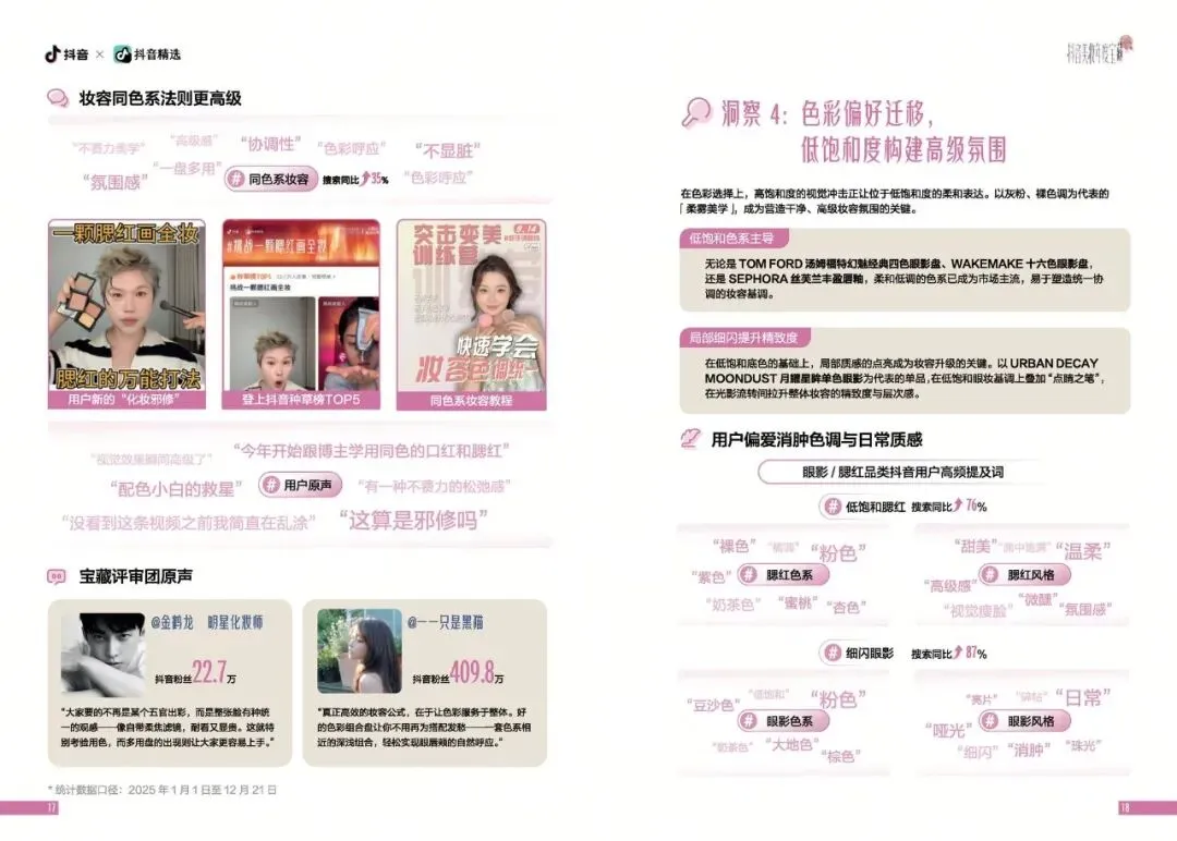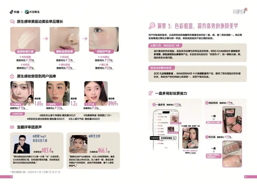 彩妆领域在2025年迎来了显著的变革。调研显示,消费者对彩妆产品的选择更加注重简约、高效与多功能化。多用途彩妆产品成为市场新宠,这些产品以“一盘多用”的理念,满足了消费者对全脸色彩协调统一的需求。数据显示,一盘多用搜索同比上升116%,消费者在追求美的同时,也渴望通过简化步骤来节省时间和精力。