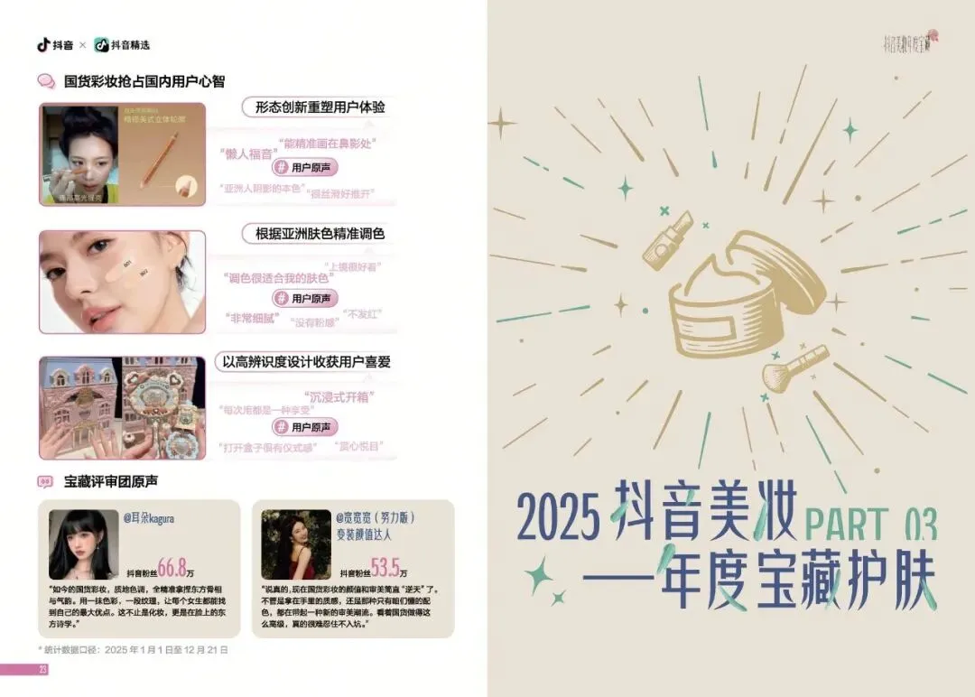 2025年,美妆消费已经进入用户主导的新时代。消费者不再是被动接受品牌营销的对象,而是通过自己的选择和反馈,影响着美妆趋势的发展。用户对美妆产品的选择更加理性和个性化。他们不再盲目追求大牌,而是根据自己的实际需求和使用体验,选择最适合自己的产品。这种消费观念的转变,促使美妆品牌更加注重产品的实用性和创新性,以满足消费者多样化的需求。