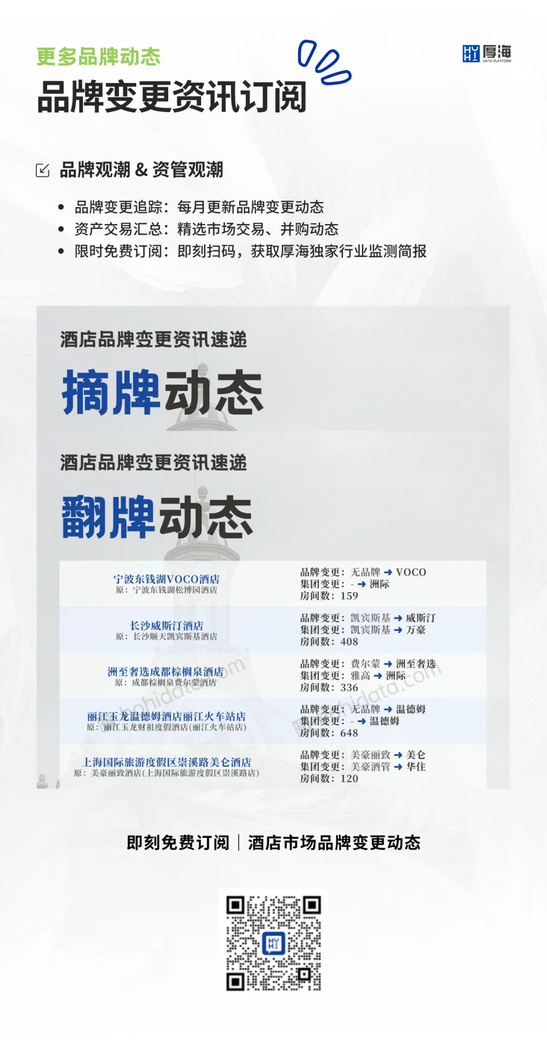 自2022年首次发布后,「厚海数据平台」连续第四年发布《中国酒店市场品牌变更洞察报告》,将继续为行业提供最新的数据支持与趋势分析,深入剖析品牌变更背后的市场变化,并从多个维度呈现品牌变动的驱动因素和市场机遇。本报告在延续既有研究框架的基础上,结合最新数据,对中国酒店市场品牌变更情况进行年度更新,力求为行业提供持续、可比且具备参考价值的市场洞察。