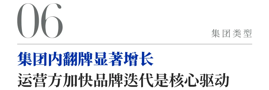 2025年,在识别到的翻牌酒店中,共有117家酒店在同一集团体系内完成品牌更换,约占翻牌酒店总数的37%。集团内翻牌已成为当前品牌调整中的重要组成部分。