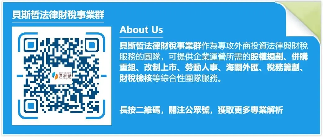 第三部分则是对台资企业税收风险控制的建议。无论是经济大环境的压力,还是金税四期的精准风险识别与预警威力,都促使财务人员与企业除需提高专业学习能力之外,更应该强化财务的精细化管理与企业合规内控,必要时也可以聘请第三方专业机构协助企业进行健康检查,尽早未雨绸缪。