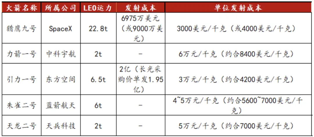 全球火箭发射依然存在高成本问题。从国际层面看,即便以SpaceX猎鹰九号为代表的行业领先者,其单位发射成本仍需3000-4000美元/千克,反映出技术门槛和单次使用模式带来的成本压力。国内市场同样面临这一挑战,虽然引力一号以4200美元/千克的单位成本成为国内性价比最优选择,但朱雀二号、天龙二号等火箭的单位成本仍维持在5600-8400美元/千克区间,与国际先进水平存在明显差距。这种高成本结构不仅限制了商业航天的普及应用,更成为低轨卫星星座大规模部署和深空探测任务推进的主要障碍。