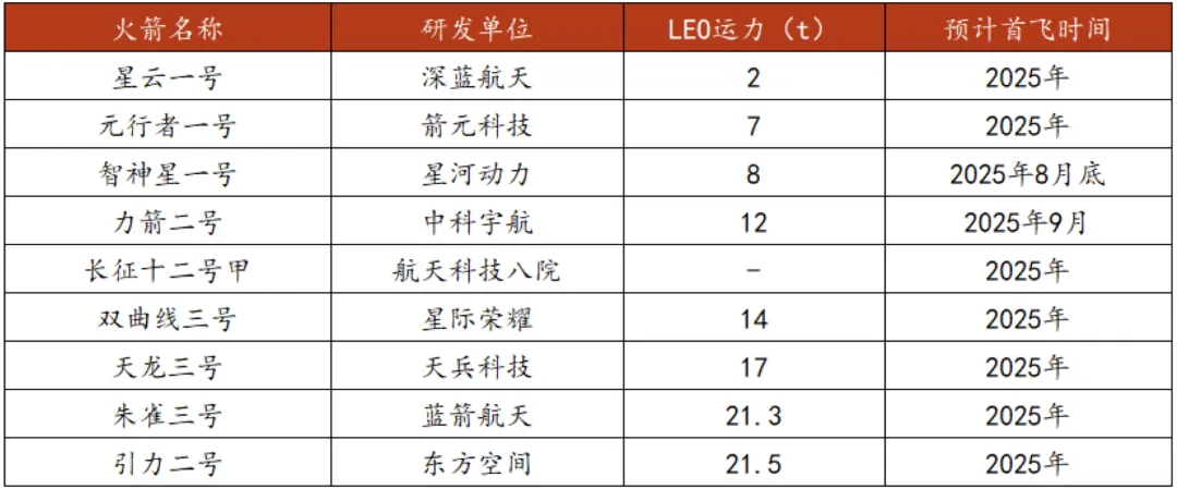 下半年多款可重复使用火箭首飞。2025年下半年,我国将进行大量运用可回收技术的火箭发射活动。