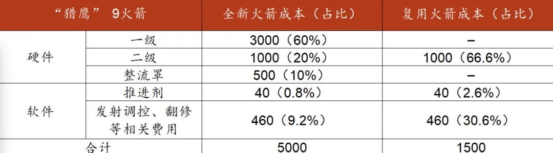 目前,“猎鹰”9火箭全新火箭发射成本为5000万美元,而通过复用火箭一级助推器、整流罩,随着复用次数的增加,复用火箭成本降低至约1500万美元。SpaceX日趋成熟的可重复使用火箭技术,有效增加了火箭使用次数、降低了单次发射成本。