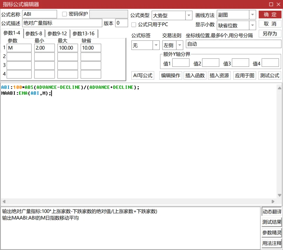 ABI的公式看起来有些抽象:ABI = 100 * ABS(ADVANCE - DECLINE) / (ADVANCE + DECLINE)。别慌,我们用一个生活场景来拆解它。