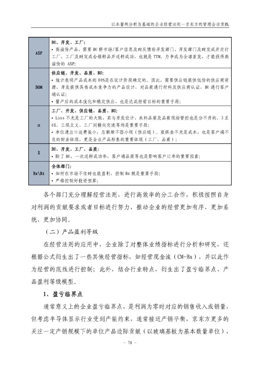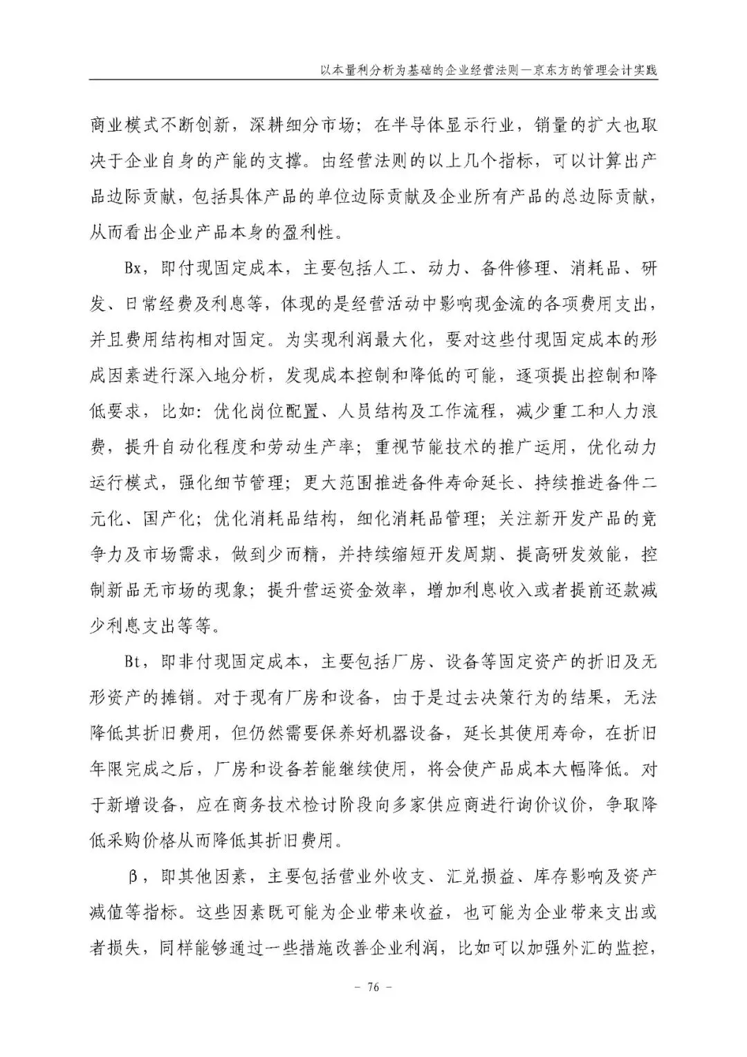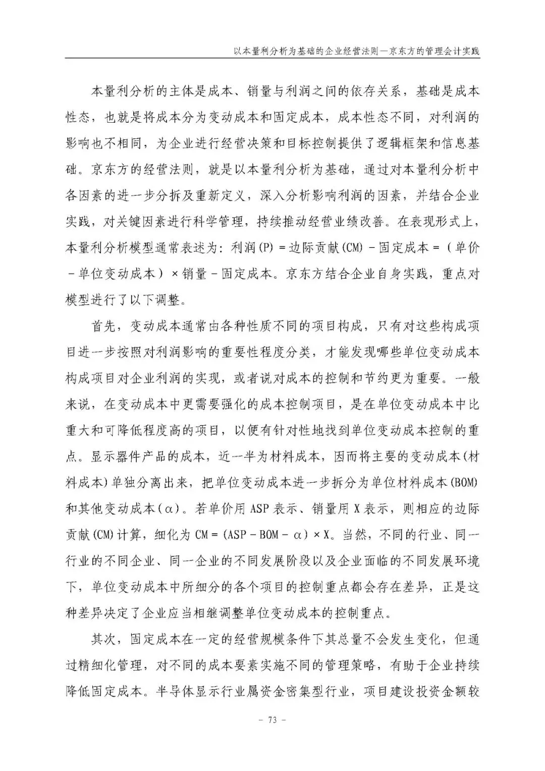 以本量利分析为基础的企业经营法则一京东方的管理会计实践