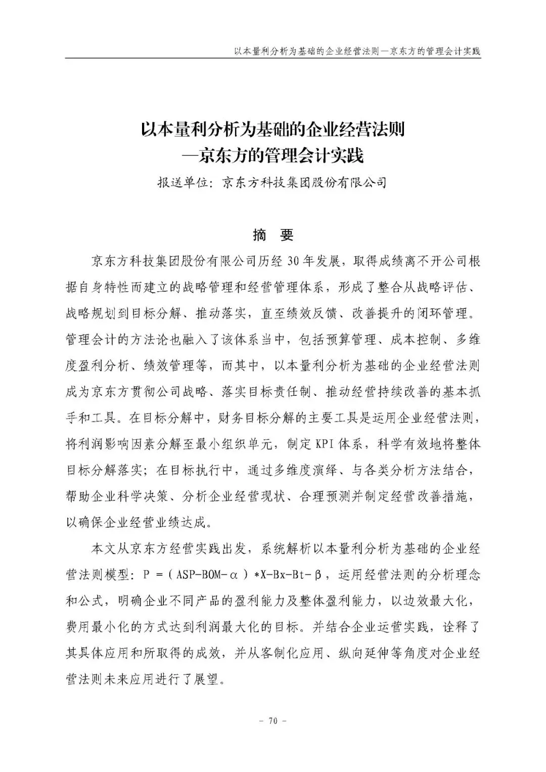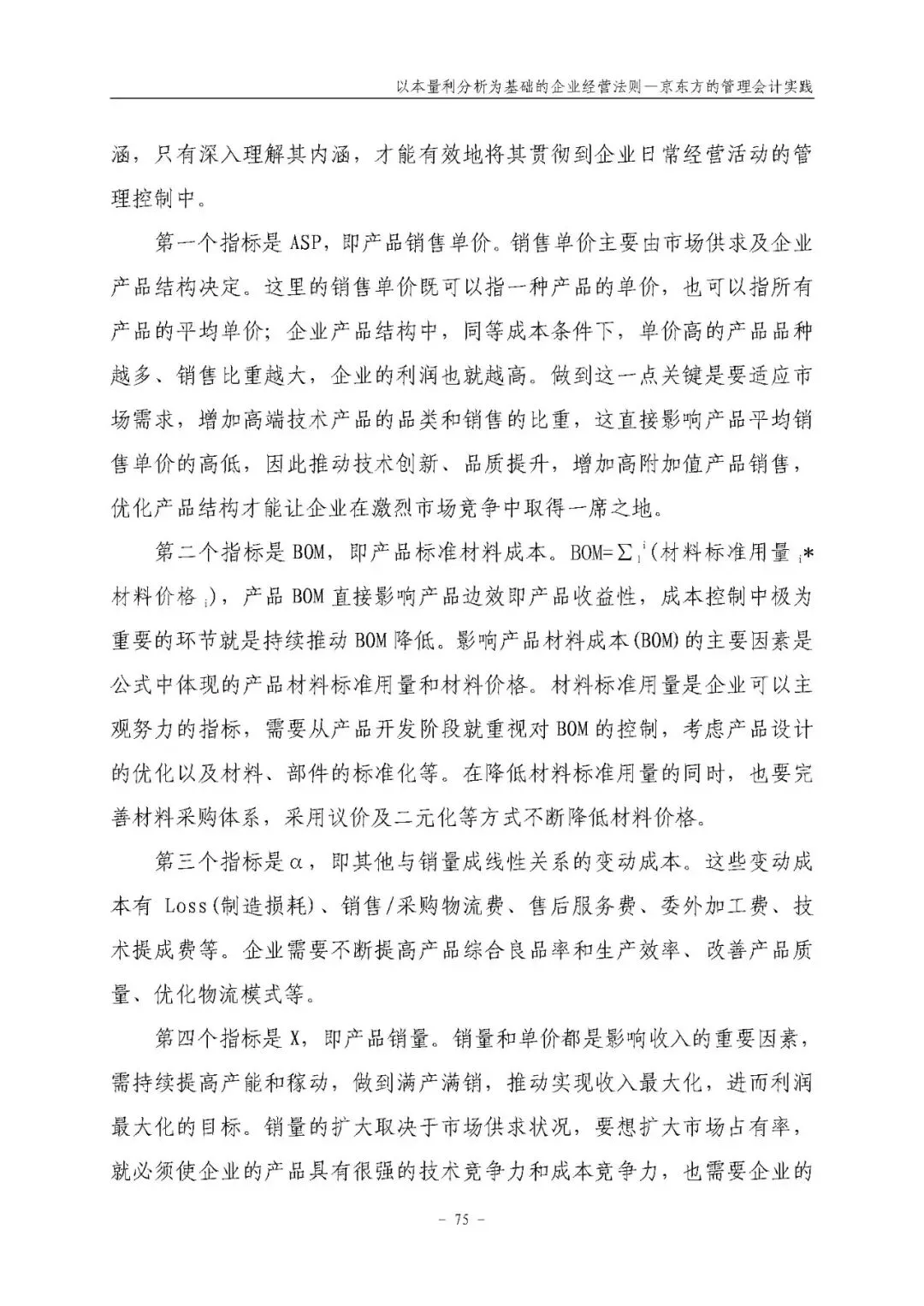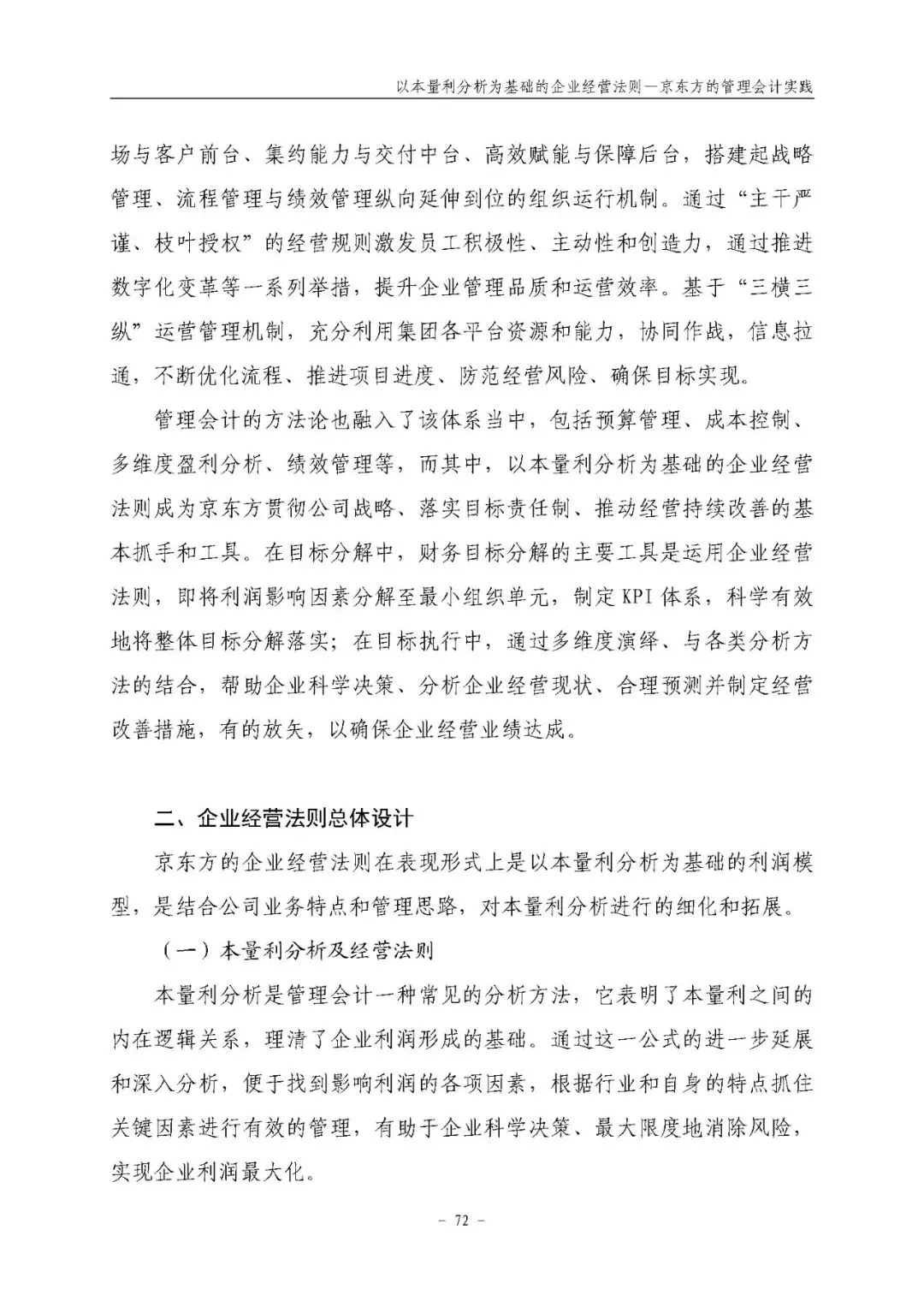 以本量利分析为基础的企业经营法则一京东方的管理会计实践