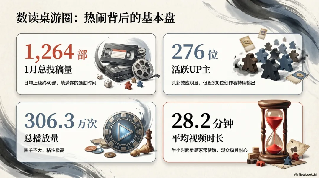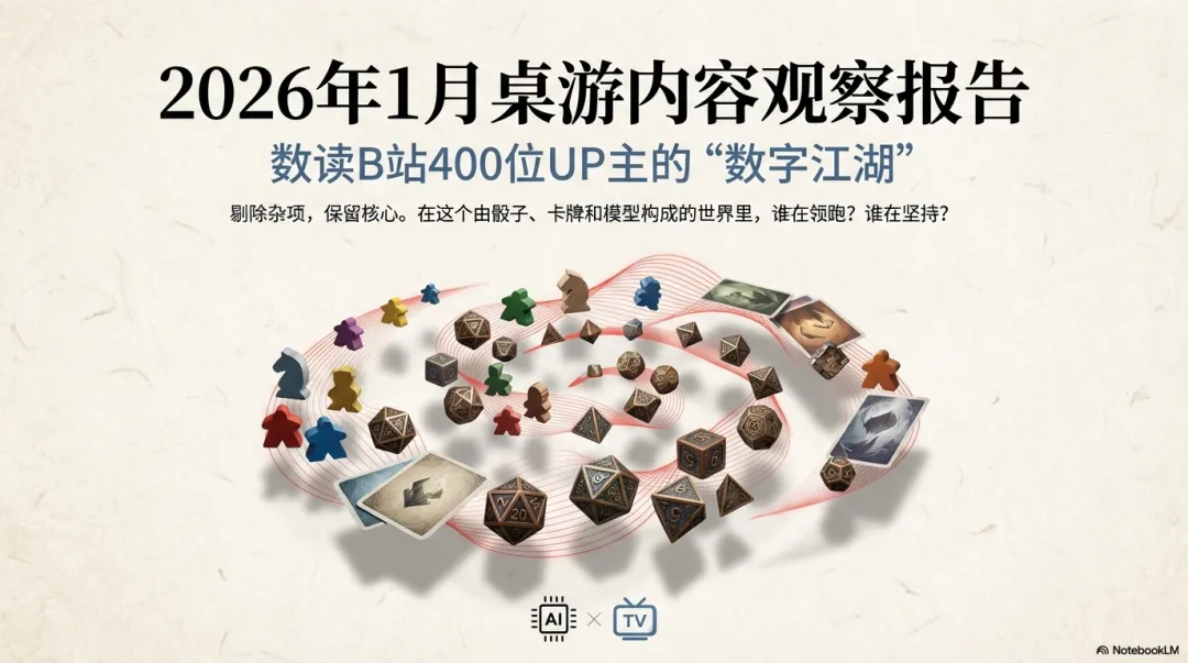 2026年伊始,我决定开启一个新的月度观察系列,通过AI跟踪和分析我关注的400名B站UP主们,所发布的桌游相关视频数据,试图和大家一起看看: