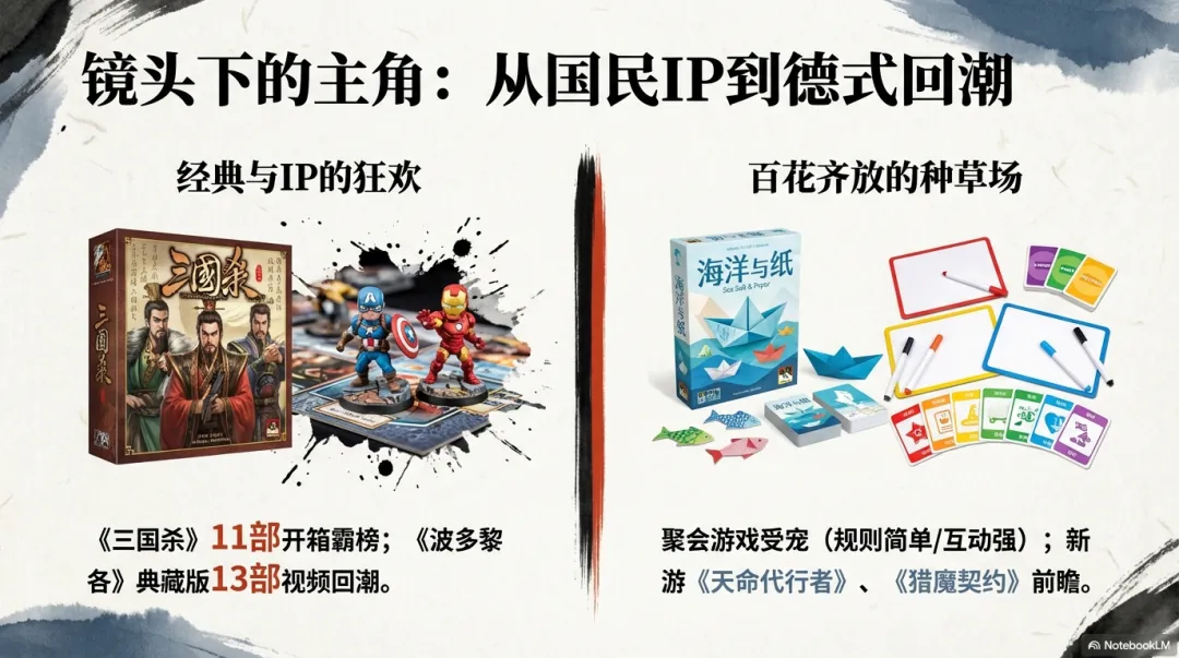 国民IP霸榜:《三国杀》以11部开箱视频位居榜首,证明了其庞大的用户基础和持续的新品产出能力。