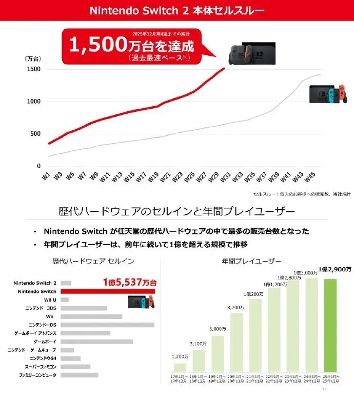 NS2销量已超过Wii U,也是首年销量最高的任天堂游戏机。