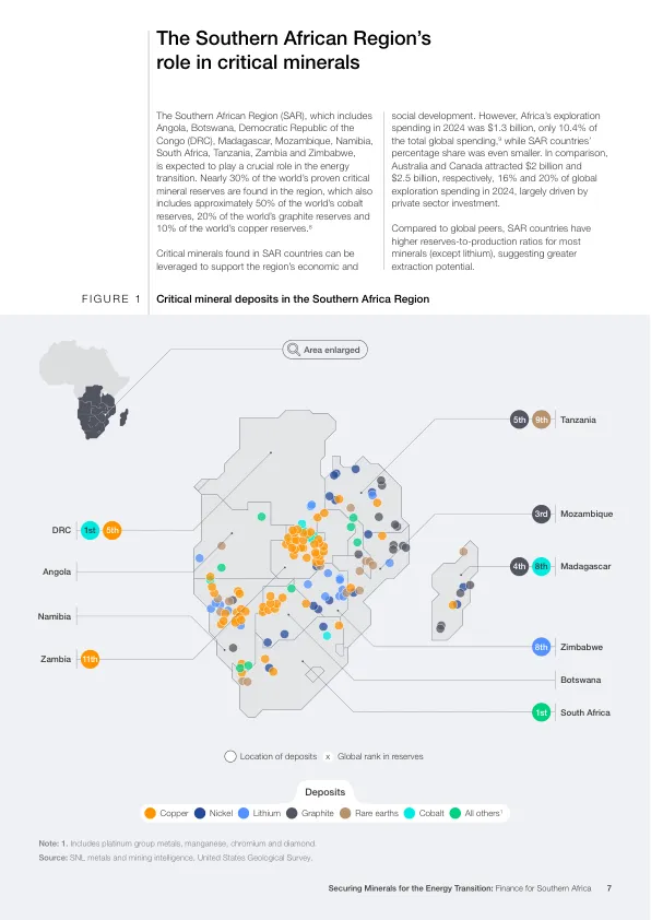 - 投资严重不足:尽管资源丰富,但该地区吸引的全球勘探投资不到10%,远低于澳大利亚和加拿大。