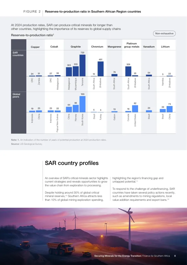 - 资源禀赋惊人:南部非洲拥有全球近30%的关键矿产储量,包括50%的钴、20%的石墨、10%的铜等。
