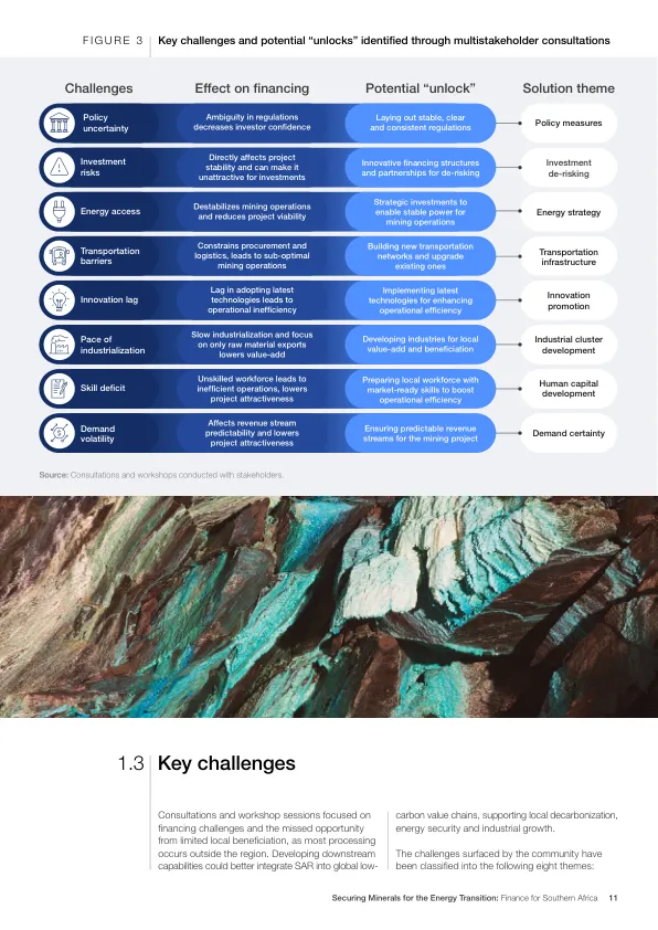 | 7. 技能人才缺口 | 公私合作培养本地人才 | 南非曼德拉矿业园区:政府与矿业协会共建研发与培训中心,开发延长矿山寿命、提升安全的技术,并培养本地工程师和技术工人。 |