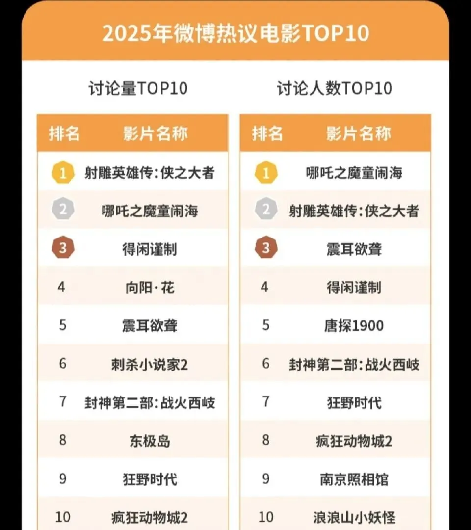9.微博热议电影讨论量TOP.1及TOP.3:射雕英雄传侠之大者、得闲谨制