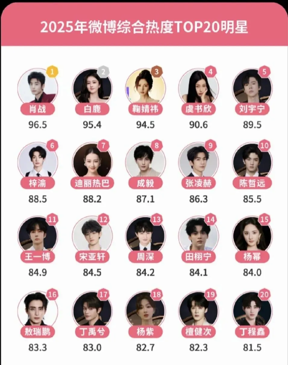 1.肖战为微博综合热度明星TOP.1