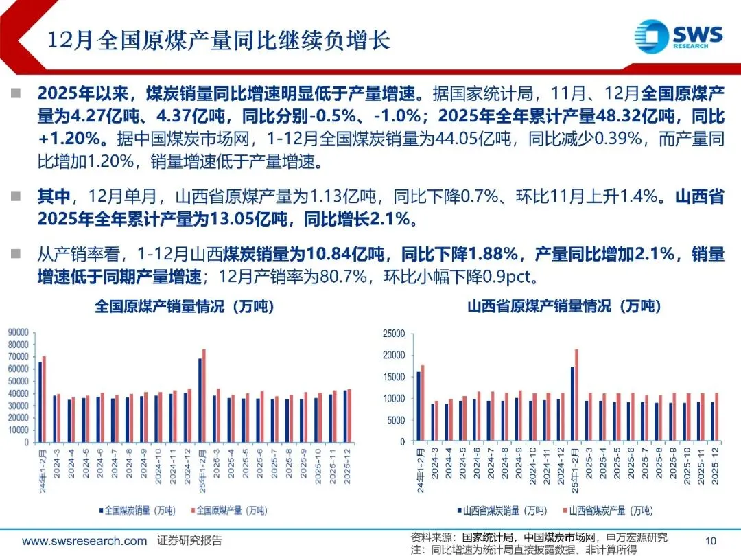 煤炭行业供给端正面临深层次格局重塑。2025年12月国家六部门印发《煤炭清洁高效利用重点领域标杆水平和基准水平(2025年版)》,将燃煤发电供热煤耗、煤制天然气等等纳入管控范围,叠加安监、环保常态化监管持续从严,供给秩序进一步向理性化、高质量转型;叠加主产区产能置换马新增产能严格审批,行业产能释放预计延续稳中有紧态势,优质合规产能话语权持续提升。逆全球化浪潮推动资源民族主义持续觉醒,煤炭作为关键战略能源,其保障国家能源安全的核心价值被重新凸显。2025年12月以来,印尼明确下调2026年煤炭生产目标,重启1%-5%煤炭出口关税并收紧外汇管理,通过产量调控、税费调节巩固资源主动权。